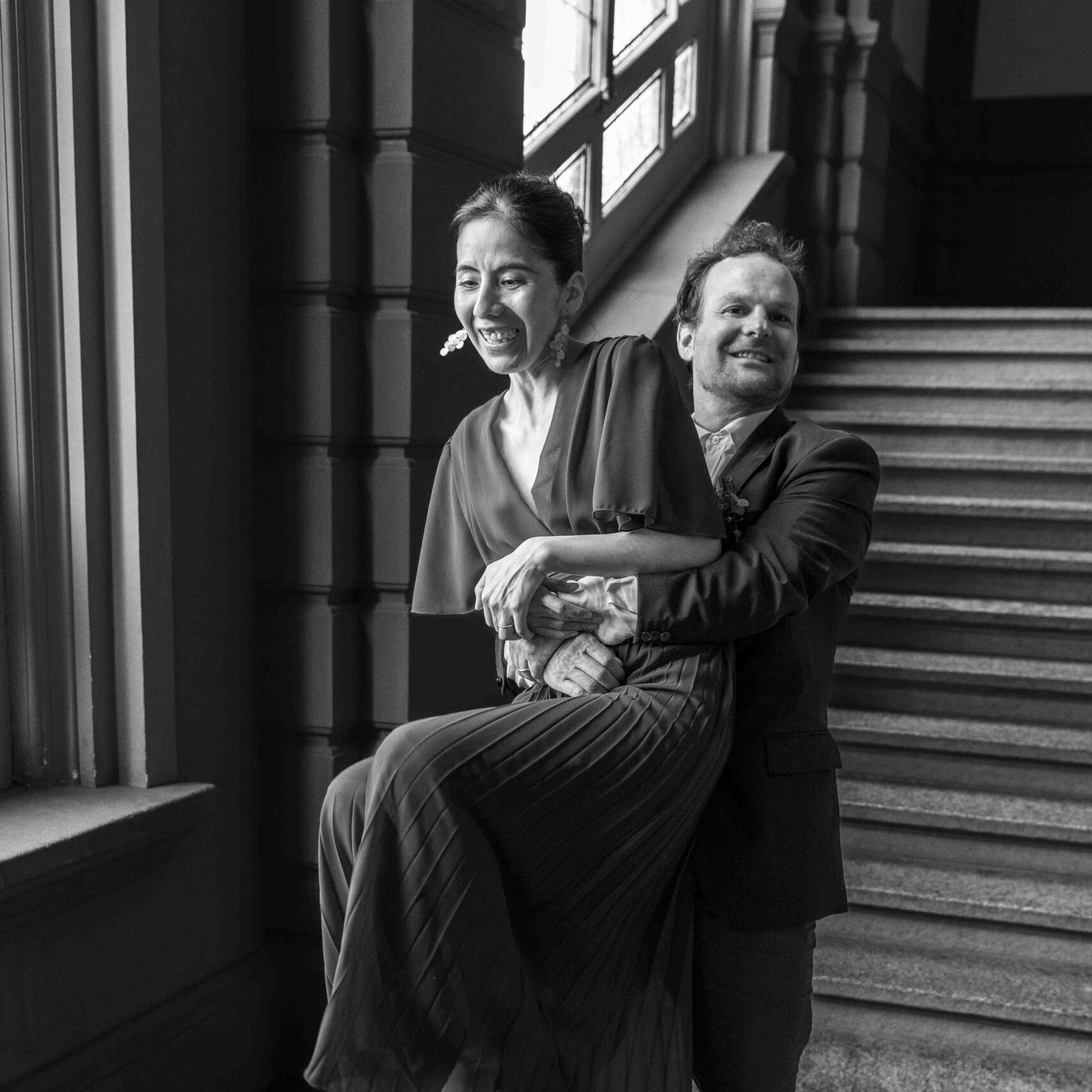 Besonders gelungen war das Gruppenbild vor der Uni Bern. Die Bildaufteilung mit den Bäumen und dem Unigebäude im Hintergrund hat perfekt gestimmt. Michael hat die Szene gekonnt arrangiert und die Stimmung der Gäste sehr gut eingefangen. Auch das Shooting nach der Hochzeit in der Uni drin zeigte, dass er kreativ denkt und dafür schaut, dass sich das Paar wohlfühlt und Dinge spontan ausprobieren kann.
